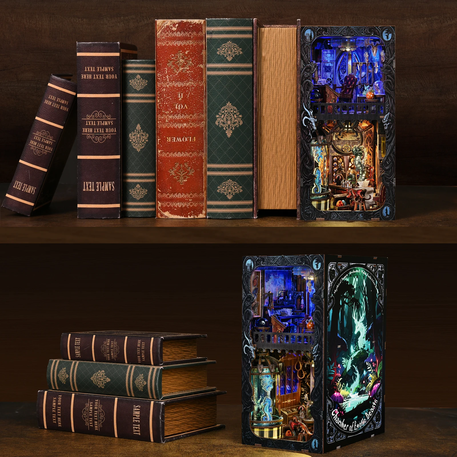 Book Nook Kit Rare Beast Collection Room 3D DIY Wooden Puzzle Handmade Bookshelf Dollhouse Model Bookend Building Home Deco