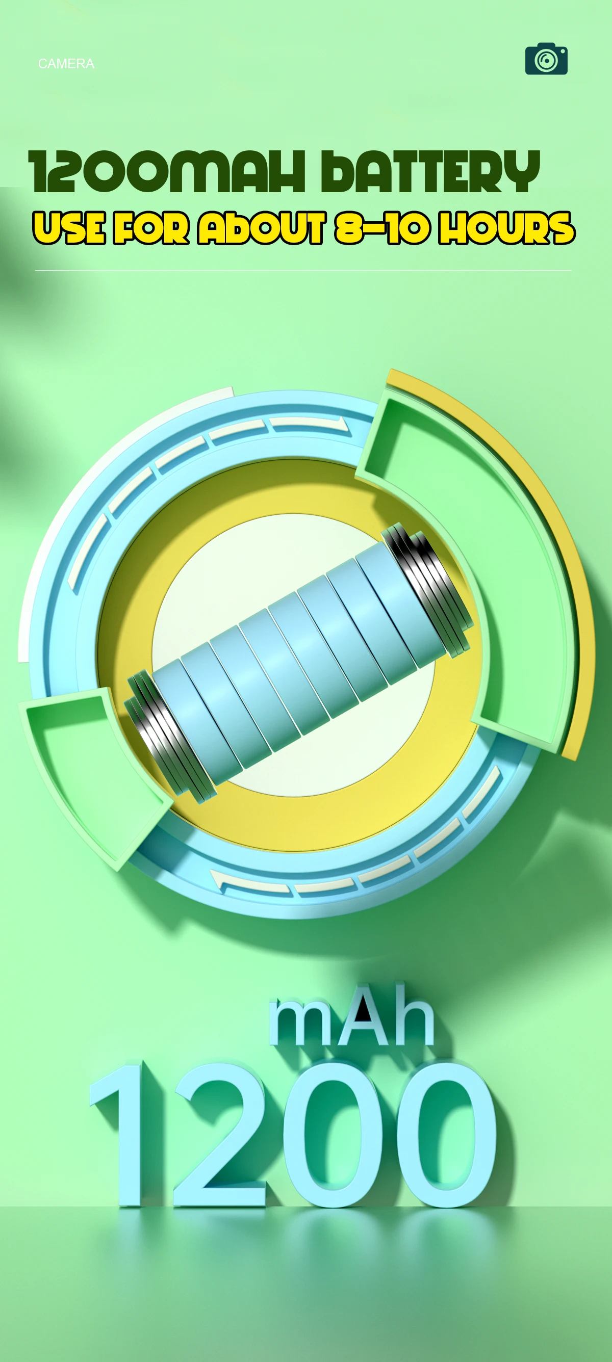 Battery capacity: 1200mAh 3.7V lithium ion battery, 2A charging