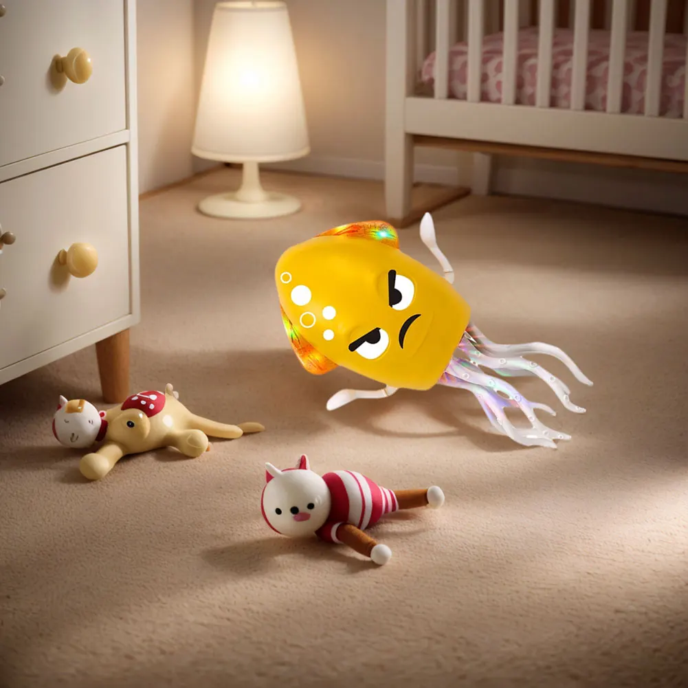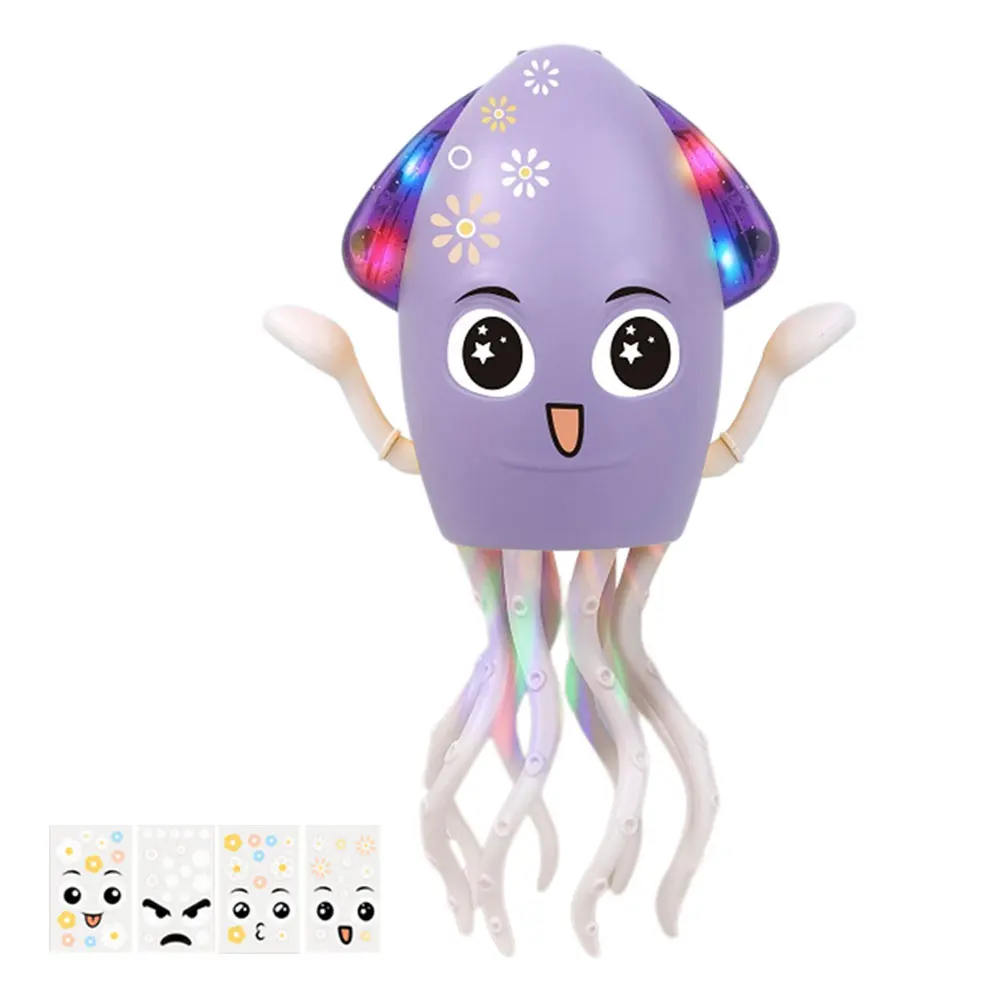 Features: 1.Enhanced Dancing Experience: Introducing rhythmic twists, multiple song switches, and magical sound effects, this dancing funny octopus toy offers a mesmerizing visual and auditory feast, making dance cooler and more entertaining. 2.DIY Expressions & Assembly Freedom: With multiple DIY emoticons and a detachable base design, kids can easily swap and assemble parts, boosting creativity and personal expression with this interactive moving toys. 3.Innovative Detachable Base Design: The bottom of this cartoon electronic octopus toy features a removable structure, facilitating cleaning, maintenance, and DIY combinations for more play scenarios and personalization. 4.Smart Obstacle Avoidance: Equipped with an advanced sensing system, it navigates around obstacles intelligently, ensuring safe interaction while walking on its side, part of its electronic light up music toys features. 5.Fast Charging Long Battery Life: This education toddler octopus toy charges via USB in just half an hour and has a built-in 1600mAh lithium battery supporting up to 2 hours of continuous play. Specification: Origin: Mainland China The facial expressions are changeable and can be DIYed at will; it can sense obstacles and avoid them; it can walk in parallel; Material: ABS+electronic components Battery type: lithium battery Built-in battery capacity: 1600 mAh Battery life: 2 hours Charging time: half an hour Function: lying down and walking, automatically sensing and avoiding obstacles; dynamic sound and light; magic twisting; Power supply: USB charging is convenient and fast Product size: 20.7x12.6x7.6cm/8.07x4.91x2.96in