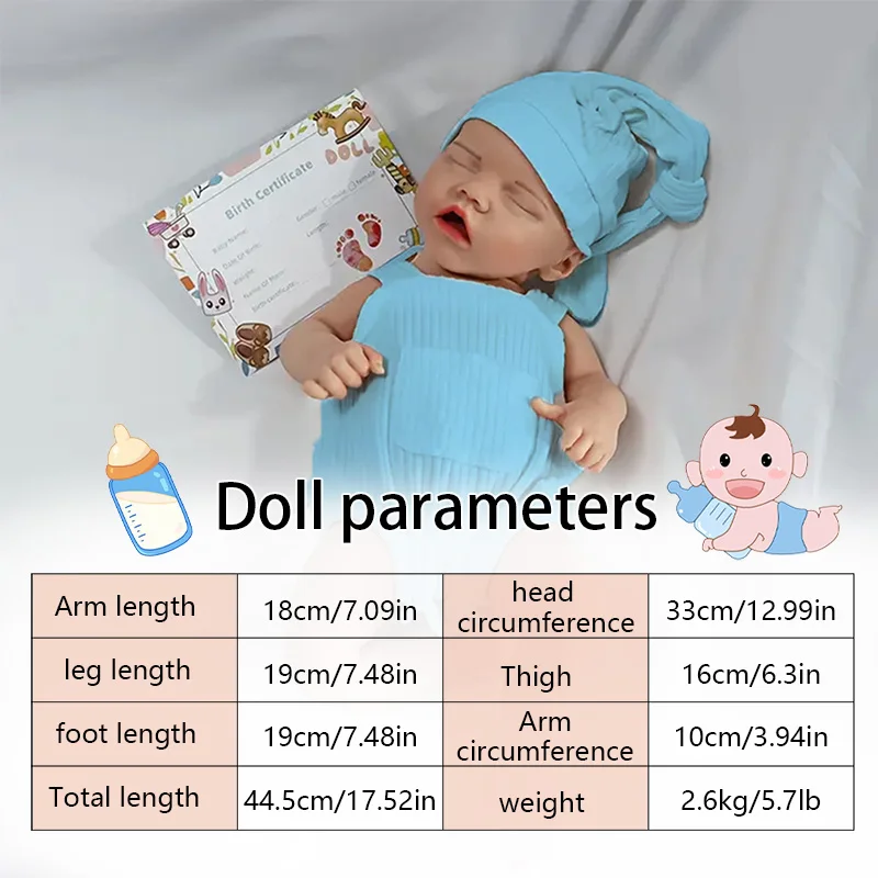 Size: 17.52 inches (approximately 46 centimeters), close to the size of a real newborn, suitable for holding or displaying.